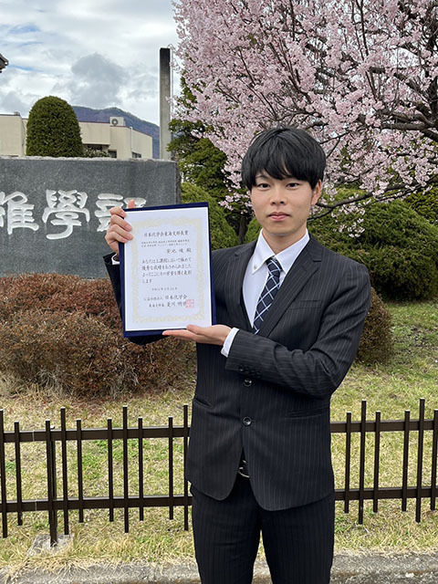 また、安池峻君(M2)が日本化学会東海支部長賞を受賞しました。この賞は当コースの修士論文発表会で最も高い評価を受けた学生が受賞するものです。おめでとうございます。