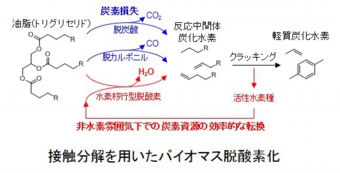 これまでの研究の成果から、接触分解反応を用いることで植物油から軽質炭化水素への転換を安価に達成できる可能性が見えてきました。特に、水素移行反応を有効に活用することで、非水素雰囲気下でも炭素損失を抑制した効率的な脱酸素を進めることに成功しています。現在は反応機構の詳細な解明や更なる高活性化に向けた触媒設計に取り組んでいます。